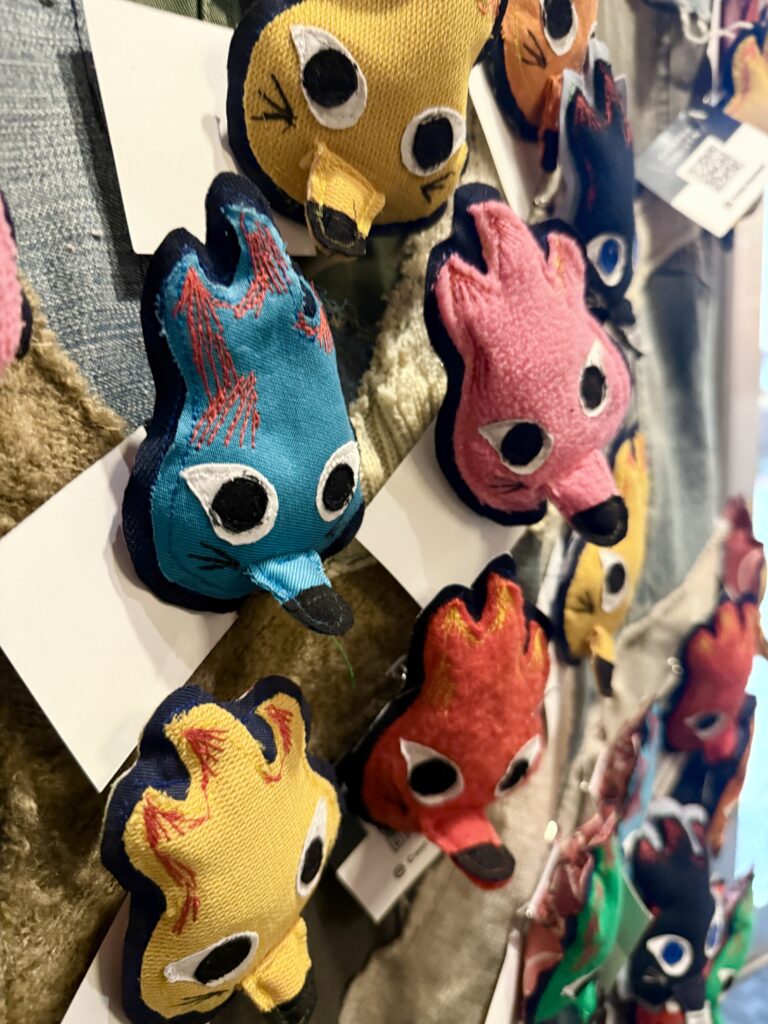 展示空間には温もりとユーモアが広がっていました。壁一面に並ぶぬいぐるみ作品は、どれも個性的でありながら、どこか懐かしい。